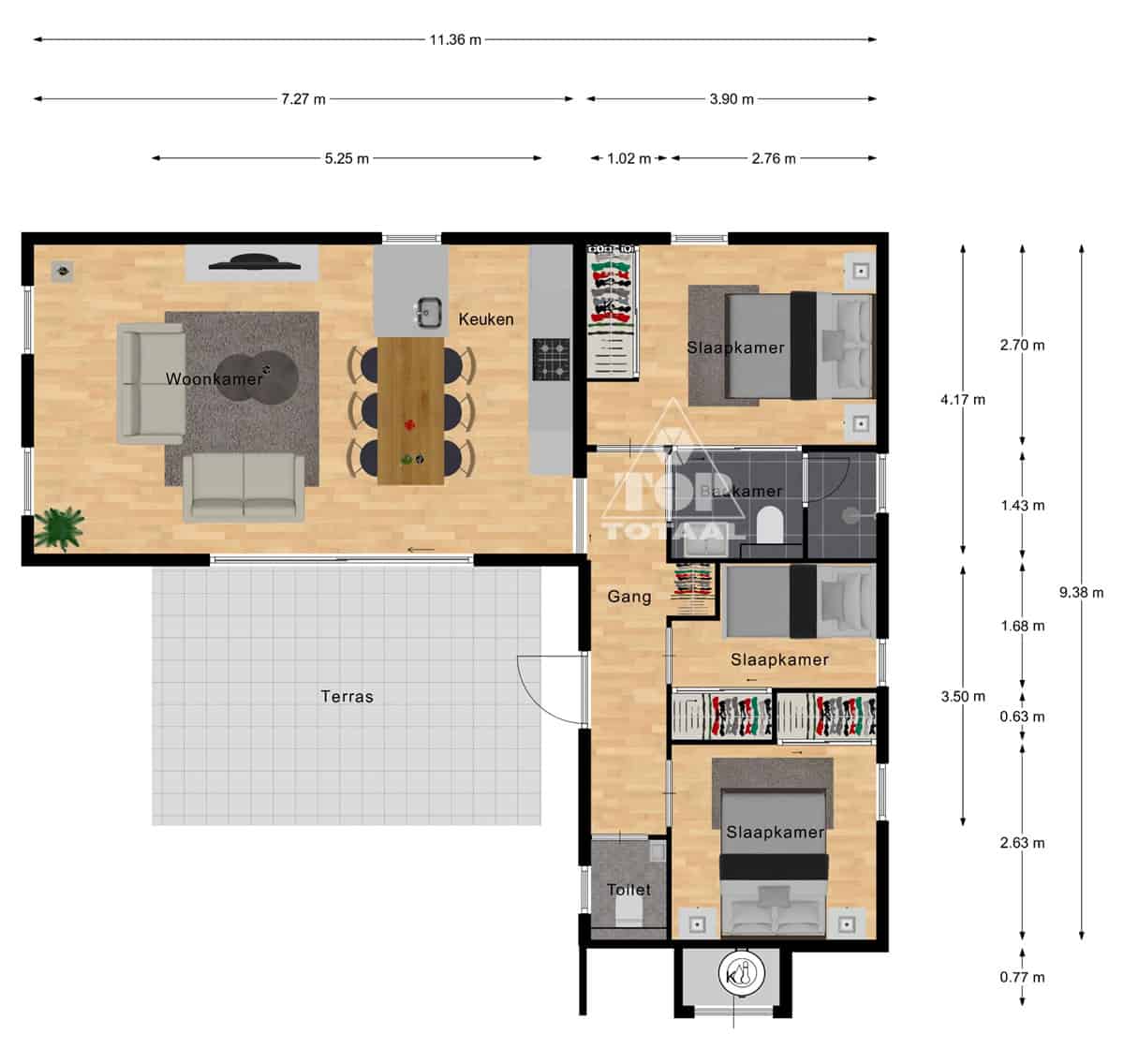 • 3 slaapkamers