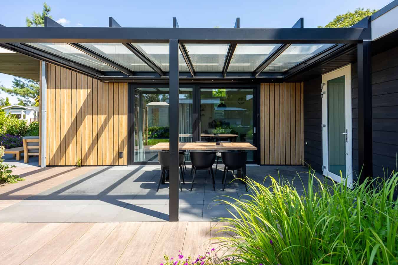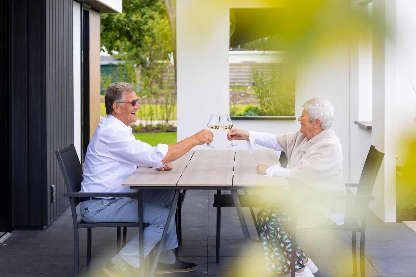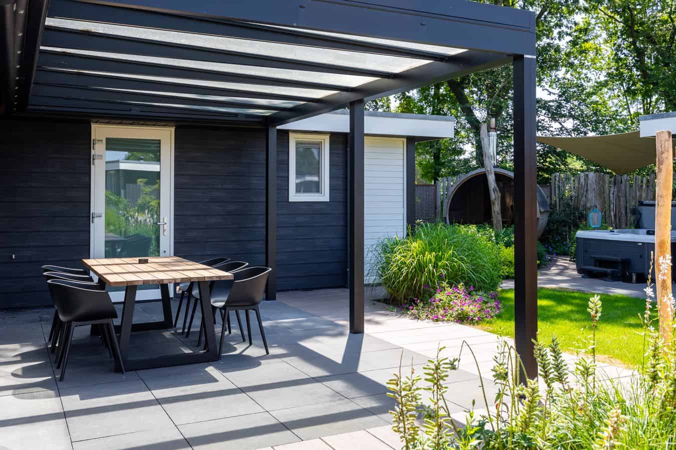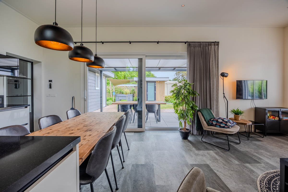 Buiten gaat het wellnessfeestje gewoon verder. Geniet van het warme, bruisende water in uw eigen buitenspa. De buitendouche zorgt voor een extra energie-shot! Gezellig samen eten? Op het gemeubileerde terras is plek genoeg.